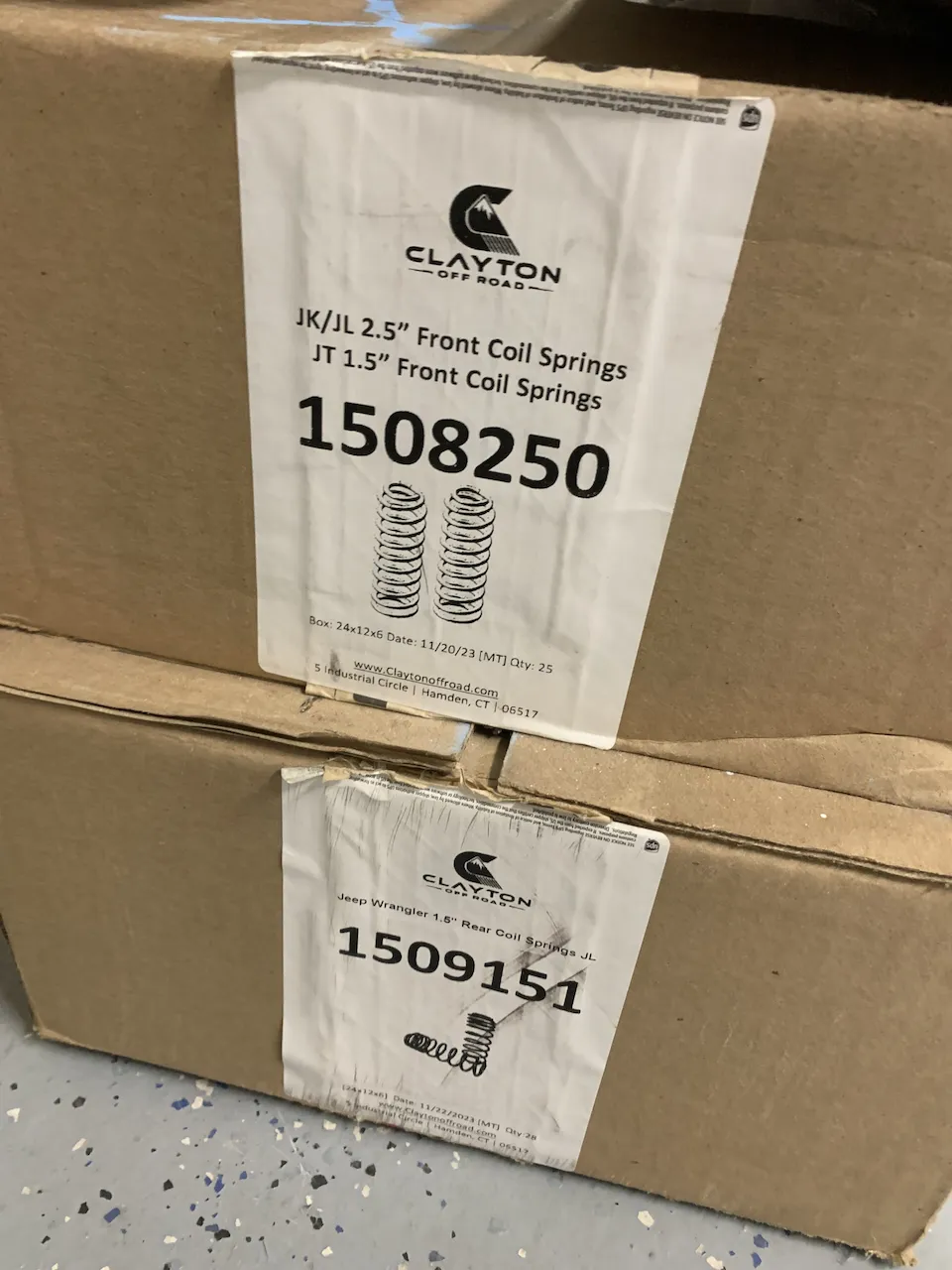 Ever since last year I've been doing research on improving the 392 on and off road performance. The factory coil springs are way too soft for a vehicle designed with this level of performance in mind. Based on the feedback from Jeep community, I bought the Clayton 392 performance coil package (essentially 2.5" coils front and 1.5" rear) and planned to get them installed in the driveway.