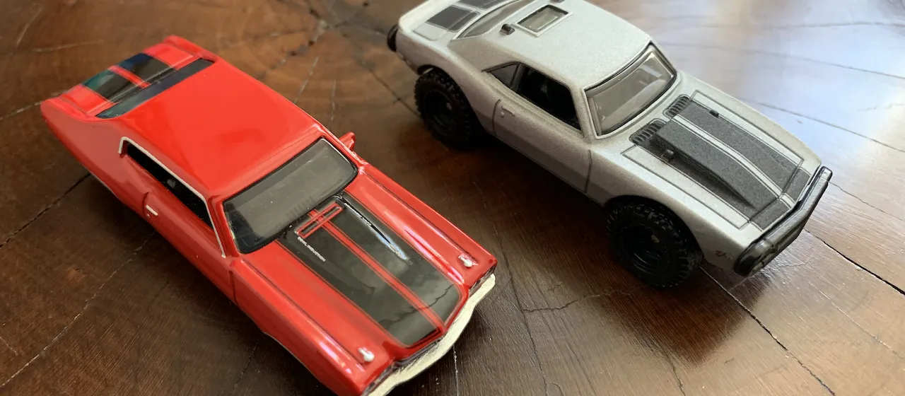 Have you ever heard of "cowl induction" and wondered what it is or how it works? While I have but I never really understood its purpose until recently. Let's take a look at two of my Hot Wheels preminum cars and pay attention to the hood scoop. The red one is 1970 Chevy Chevelle SS and the silver one is a modified "Off Road" version of 1967 Camaro.