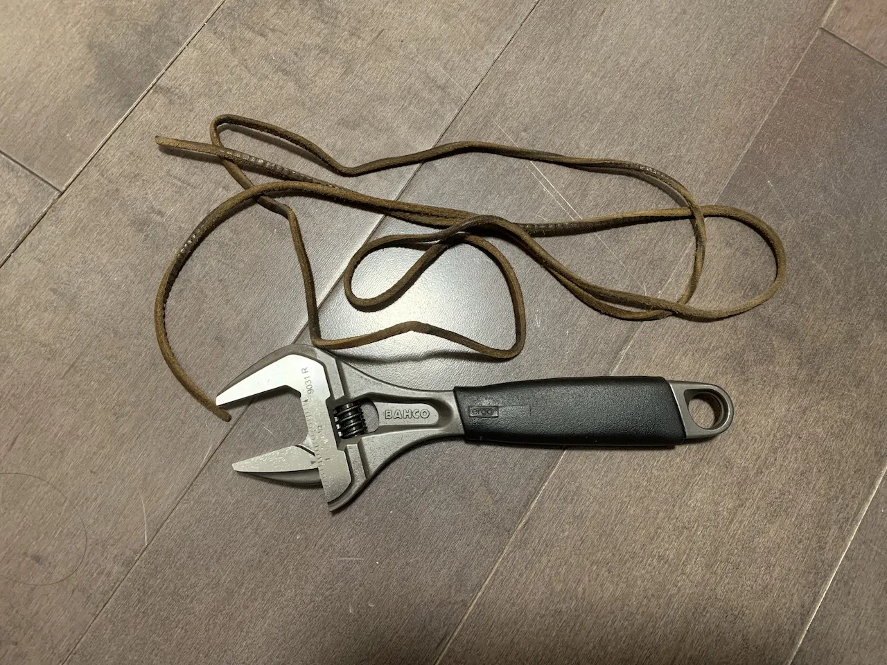 The primary purpose of a tool lanyard is to secure the tool to the user, preventing loss or accidental dropping, especially in challenging environments. I have been wanting to make a lanyard for my newly bought 8" Bahco adjustable wrench, purely for the appearance. The old leather shoelace that I kept from my old Frye Rainer Workboots became the perfect candidate as I knew I would use it for something else one day.