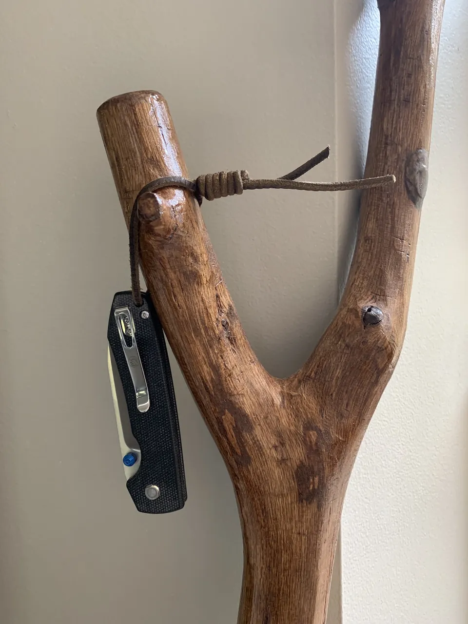 The leather shoe lace was used for my 6" boots so it's long enough to make another one for my pocket knife.